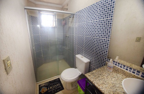 - Na suíte 1 e 2 há 1 cama de casal, chuveiro elétrico e box de vidro/acrílico