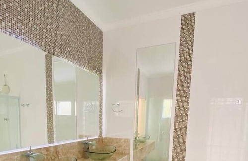 Located in Pinhalzinho, this 3-bedroom, 4-bathroom vacation home lets you experience it all. Fans of nature and the outdoors will love being 23 minutes by car from Doctor Fernando Costa Exhibition Park and 25 minutes from Lake Taboao Park. Jump into your car and tackle the 27-minute drive to Anjo Caves or the 32-minute drive to Circuit of Conventions Centre in Municipal Balneary of Waters (and enjoy of the property's convenient covered onsite parking in the meantime).