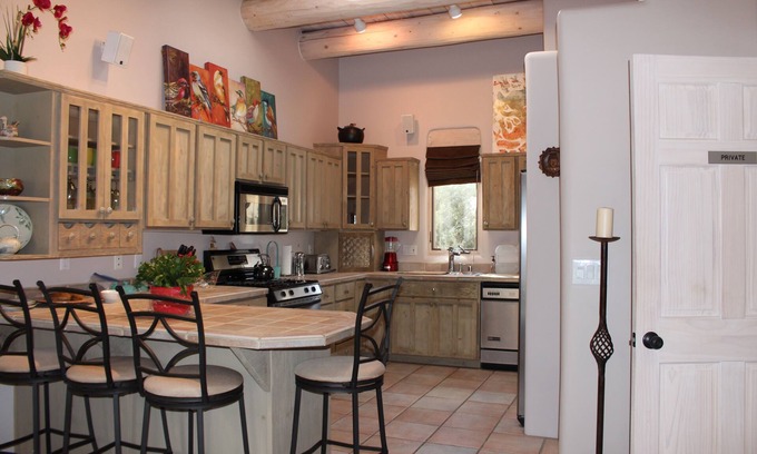 Casa De La Luz - 2 BR/2 BA Charming Santa Fe Home-16 Mile to Plaza-Pet Friendly has 2 Bedrooms , 2 Bathrooms, and max occupancy of 4 people. The minimum rental for this property is 1 nights, but this can change depending on the season you plan on staying. Previous guests have given good rated it, and VRBO labeled it a top-rated House because of the excellent services rendered by the owner or manager of this House, and has consistently provided great experiences for their guests. Most families or guests that use it recommend it to their friends and some of them are repeat guests. House has a friendly neighborhood, and the Santa Fe has interesting places to visit. If you want to learn more about the House in Santa Fe, such as places to visit and things to do nearby, you can check below to learn more.