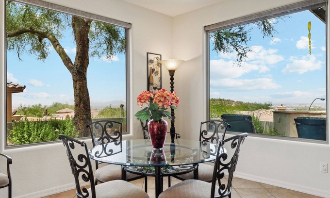 Welcome to this stunning 1,670-square-foot retreat in the McDowell Mountains, where comfort meets luxury. Featuring 2 bedrooms and 2 bathrooms, this home is designed to capture the beauty of the desert with sweeping city lights and dramatic mountain views.