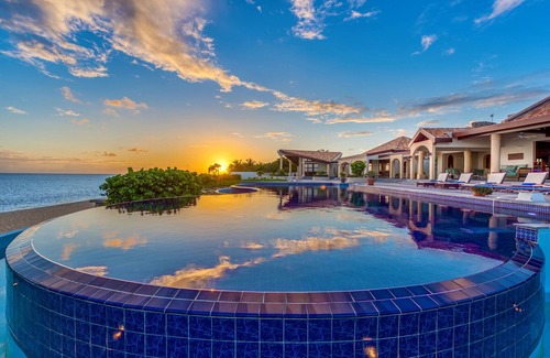 Located on perhaps the most coveted stretch of beach in French St. Martin, on idyllic Baie Longue with its pristine white sands and crystal clear waters, lies the stunning five bedroom, beachfront estate of Casa de la Playa.