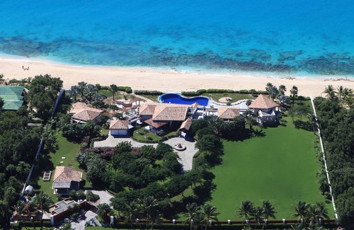 Palatial wrought iron entrance gates and a long meandering driveway flanked by manicured lawns and verdant tropical gardens lead to the impressive main entrance and a stunning view over the beautiful blue-tiled pool in the foreground and a beautiful backdrop of the Caribbean.
