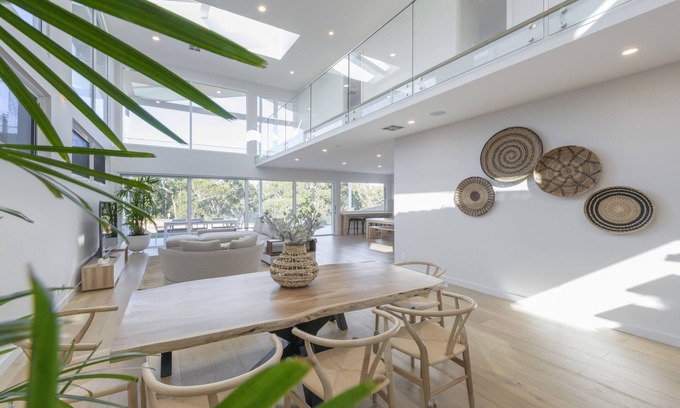 Experience Coastal Luxe at Casa de Mare. Featuring a stunning white themed exterior, an abundance of windows for natural light, a 3-story feature staircase and expansive reserve views, it has direct access to Moonee beach through the reserve. Casa de Mare is ideal for families looking for a relaxing getaway.