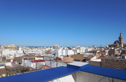 On the Costa Blanca, in the town of Oliva between Alicante and Valencia, small village house for rent, located in the historic center, next to a small shaded and typical Church square with its local shops (bars , bakery, butcher, supermarket)