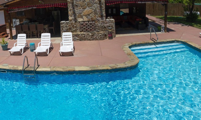 CASA DE BEERS offers This Beautiful Log Home with Resort style Heated Pool, located just off Highway 101 and across from 101 Boat dock, offers everything a Family Gathering could ask for. 3 bedroom, 3 bath sleeps 14, Resort style Pool with slide, diving board, and beautiful rock waterfall, Hot tub, 800 sq ft Outdoor attached Pavilion with Yamaha top of the line sound system with 2 zone listening for Pool and Pavilion, Surround sound for 2 60" flat screen TV's ,WIFI, Outdoor complete Kitchen, 48" flat gas griddle, top of the line Commercial gas grill, full refrigerator, Traeger Smoker grill. seating for All your guests. Privacy fenced back yard, play-set for kiddos. Basketball court, you name it and the backyard can accommodate it. The indoor of this magnificent home offers a Huge Master Suite with Custom Master Bath, Huge closet with Custom Shelving. 2nd Bedroom(Beach Room) offers Queen bed with private full bath, 50" flat screen TV .Bedroom 3 offers 2 full on bottom twin on top bunk bed, both with twin trifles below ( can sleep up to 8), 55" flat screen TV, Living Area offers 2 full Sleeper Sofas, 60" Flat Screen TV. Kitchen and Dinning area offers side by side fridge, stove, microwave, all dishes, pots pans blender, etc that you would need to make any meals. Seating for 14, GameRoom offers Top of the line Pool Table, 3 Arcade style games, PacMan, Asteroids, Galaga. Saloon Style bar. This Home is a one of a kind Top of the line Pool home, with top of the line beds and bedding, no expense was spared putting this home together, CASA DE BEERS will be the home you and your family will return year after year to enjoy.