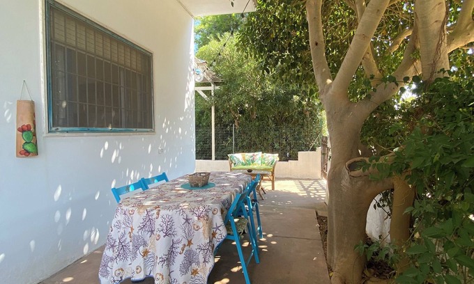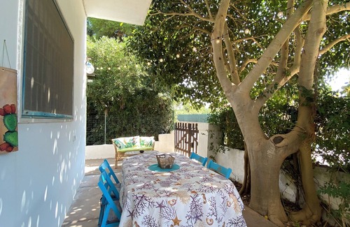 Built close to a suggestive and valuable natural depression as a naturalistic oasis, it is a simple and Mediterranean house, fresh and welcoming, with three bedrooms, two bathrooms, one without shower, with a covered outdoor shower, a dining room. complete kitchen equipped with tableware and table linen.