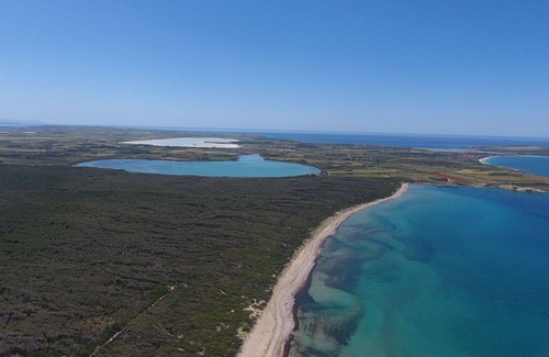 The house is located in the locality of Torre del Pozzo, a hamlet in the municipality of Cuglieri, in the province of Oristano, in western Sardinia. The locality is located 20 km from Oristano and 40 km from Bosa Marina, on a coast full of very beautiful beaches all within 20 km of the house. The beach of the house, the one in front of the house, is located 200m from the entrance gate and is called Is Arenas. This beach has an entirely sandy seabed and beach for kilometers and gives the right privacy to all its visitors and is immersed in a large pine forest of a thousand hectares.