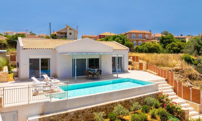 The villa's location in Lakithra offers easy access to Kefalonia's