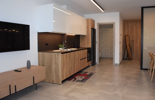 Casa di Pino A is a luxury apartment ideally located in the central square of Paradisi village, just minutes from Diagoras Airport. Designed for modern comfort, this stylish apartment offer spacious, contemporary living with high-end finishes and an open-concept layout. Casa di Pino A is a cozy one-bedroom apartment with a double bed. Upon entering, you’ll be welcomed by a bright living space with large balcony windows that open onto a small veranda overlooking the village square. The living area is furnished with an elegant sofa, stylish coffee table, and a modern dining area, creating the perfect space to relax. The fully equipped kitchen allows for effortless meal preparation, while the modern bathroom feature deluxe shower and ceramics. The apartment is fully air-conditioned and include a flat-screen TV and high-speed free Wi-Fi for added convenience.