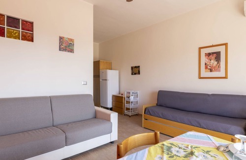 "Casa di Théo", 1-room studio 35 m2 on 1st floor. Simple and practical furnishings: living/dining room 35 m2 with 1 double sofabed. Kitchenette (mini-oven, 2 gas rings, toaster, kettle, electric coffee machine). Exit to the balcony. Shower/bidet/WC. Heating, forced-air heating, boiler (80 litres). Heating available only from 01.12. to 31.03. Small balcony 3 m2. Balcony furniture. View of the sea. Facilities: washing machine, iron, baby cot for up to 2 year olds (extra), hair dryer. Internet (WiFi, free). Please note: smoke alarm, fire extinguisher. IT083032C2D57DC3UC