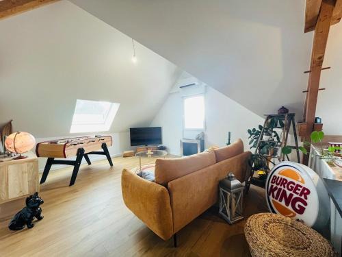 Casa Diderot - T3 is located in Angers, just 4.3 miles from Terra Botanica and 26 miles from Zoo de Doué la Fontaine. This apartment offers accommodations with a terrace. Free Wifi is available throughout the property and Angers Expo is 3.6 miles away. The air-conditioned apartment consists of 2 bedrooms, a living room, a fully equipped kitchen with a dishwasher and a coffee machine, and 1 bathroom with a shower. Towels and bed linen are offered in the apartment. The property has an outdoor dining area. Popular points of interest near the apartment include Stade Jean-Bouin, Angers Courthouse, and Angers Town Hall. Nantes Atlantique Airport is 64 miles from the property.