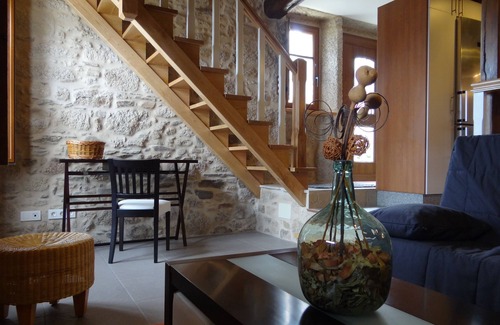 Stone house with wooden ceilings, completely renovated. The property is distributed in a double room with bunk beds; a double bedroom; bathroom with shower and hydromassage column; kitchen with refrigerator, oven, microwave, coffee maker, hob, iron and utensils; and living room with sofa bed, pellet stove and TV; in total 60 m2.