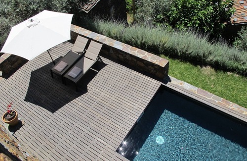 Outside we have a swimming pool and a large wooden deck where you can enjoy the beautiful landscape around us and the strong, warm sunshine that warms us in summer. There is a beautiful and carefully tended garden with herbs and a dining area with barbecue and a large table sheltered from the sun by a century-old vine.
