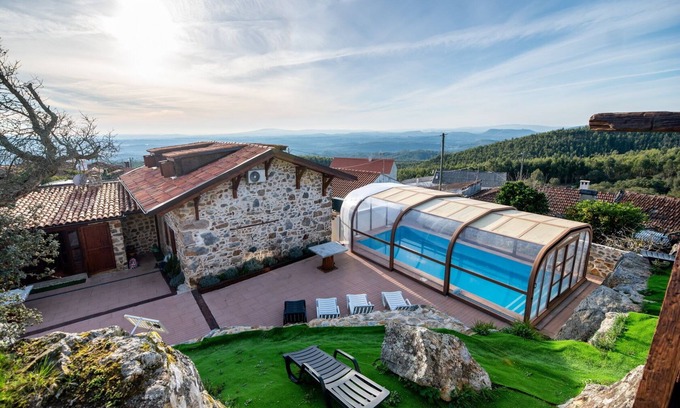 Its name was inspired in the rocks that surround it and protect it. Located in the village of Abrunheira, in Figueiró dos Vinhos' county, this house has capacity to accommodate 8 people, spread over 3 bedrooms with their own full bathrooms and a comfortable sofa bed. The fully equipped kitchen and barbeque grill call for spending time together and the fun stays near the covered swimming pool and in the games room. The house has air conditioner, TV and free Wi-Fi. It has an outdoor space you can use for parking you vehicle.