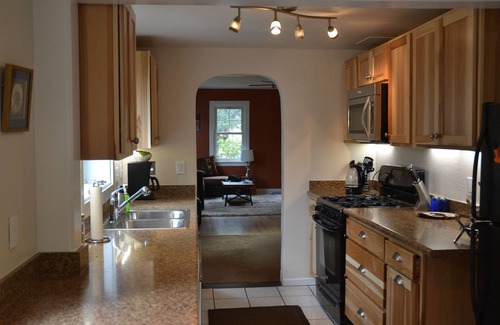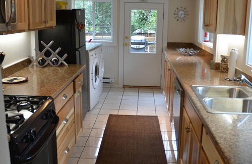 Two bedrooms have new comfortable queen beds and the third bedroom has a new twin daybed with trundle mattress and all have high quality linens and pillows. The third bedroom also has a large beanbag, 36" Flat screen TV with DirecT & Roku and many shelves containing games and puzzles. The backyard is fenced and there is a new gas BBQ on the deck. During the summer there is a outdoor dining set on the deck which seats six people.