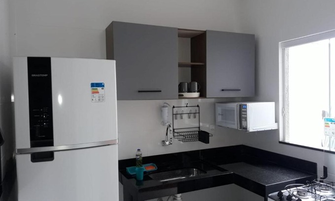 Casa em Costazul - Rio das Ostras is a recently renovated vacation home in Rio das Ostras, near Areias Negras Beach. Housed in a building dating from 2021, this vacation home provides free Wifi and free private parking. Costoes Rochosos Natural Monument is a 12-minute walk from the vacation home and Iriry Lagoon is 1.4 miles away. The air-conditioned vacation home is composed of 2 separate bedrooms, a living room, a fully equipped kitchen with an oven and microwave, and 3 bathrooms. A flat-screen TV is provided. The accommodation is non-smoking. Popular points of interest near the vacation home include Remanso Beach, Costa Azul Beach, and Whale Square.