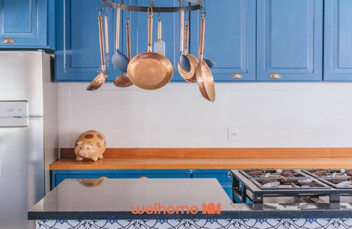 A cozinha é equipada com geladeira, fogão, forno, micro-ondas, máquina de café, pratos, talheres e utensílios básicos, atendendo desde refeições rápidas até encontros maiores.