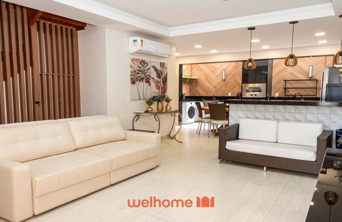 Entre os diferenciais, a casa oferece Wi-Fi de 500 Mbps), ar-condicionado em todos os ambientes, TV na sala e no quarto principal, e localização privilegiada em condomínio seguro e bem localizado em Serra, com fácil acesso a diversos serviços e atrativos da região.
