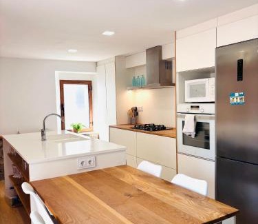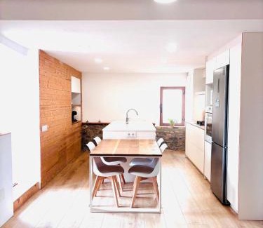 Historic Setting: Casa estilo masía en el corazón de Cataluña is located in Avinyó, housed in a historic building. The property features spacious family rooms and a recently renovated interior. Modern Amenities: Guests enjoy a terrace, free WiFi, and free parking. The holiday home includes a kitchenette, balcony, washing machine, and garden views. Additional amenities include a fireplace, dining area, and parquet floors. Convenient Location: Located 50 mi from Barcelona El Prat Airport. Visitors can explore the tranquil surroundings, perfect for unwinding and enjoying nature.