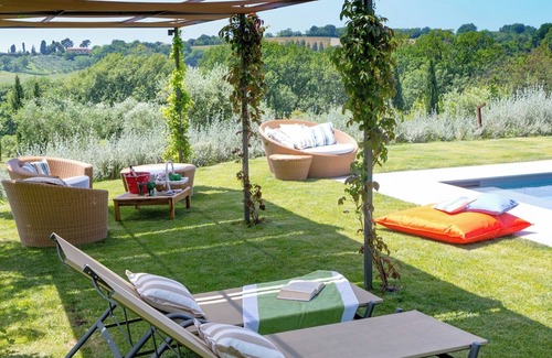 Please notice that photos are taken in spring, therefore flower blossoming, and the colours of the gardens' grass could be different at the moment of your arrival at the villa.