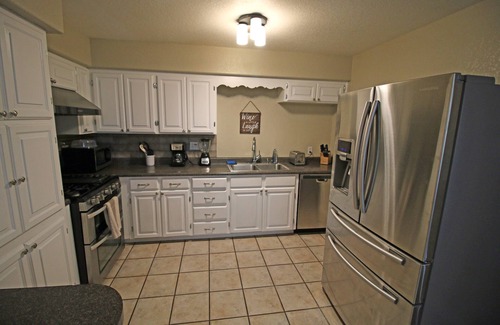 You'll love this cute and cozy home with lots of beds that can sleep up to 16 guests! Lightning fast (100mb) internet will support all your devices. Located on the north end of Carlsbad just minutes from most of the restaurants in the city and only a thirty minute drive to the Carlsbad Caverns National Park. Relax with your family or group in this four bedroom house featuring 2 king beds, 1 queen, a bunk bed room with four full size beds, and one sofa queen size sleeper.