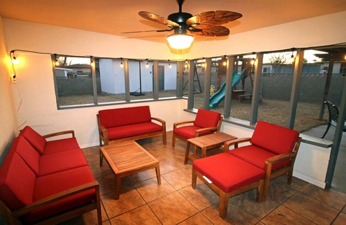 All brand new rustic furniture makes this house comfortable with a southwestern flair. Big screen TVs in every bedroom, and living room that will stream all your favorite cable tv shows. Your kids will love playing the Xbox with 18 digital games loaded ready to play. There is a playground set in the backyard that is completely fenced in. The dining table inside can seat 8, and an outside covered patio that can seat 6. There is also a nice screened in patio living area you can hang out in. The house is stocked with coffee maker, blender, toaster, and modern appliances. Washer and Dryer Room with ironing board. Beautiful Spacious bathrooms. Pack n Play is available for babies/toddlers. We've made sure to add all the comforts of home to enrich your stay and are very responsive to the needs of our guests