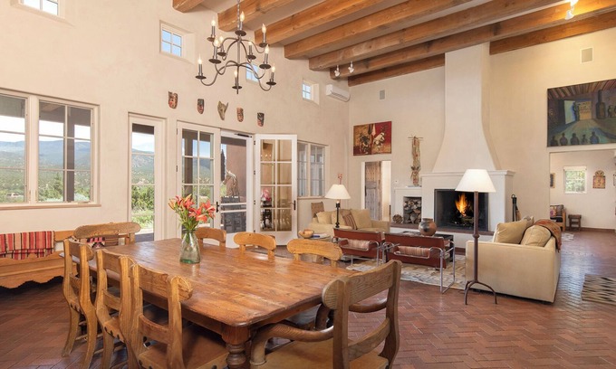 Best-rates for the Casa Fitz in Tesuque starts from $1,054 per night with includes Internet, Kitchen, Air Conditioner, Parking, Balcony/Terrace, Security/Safety, Wellness Facilities, Fireplace/Heating, Laundry, Pet Friendly, Bedding/Linens, Child Friendly with all other amenities. Perfect for Weddings is committed to ensuring every guest experiences a comfortable and extraordinary stay, whether planning a romantic getaway, a honeymoon, a pet-friendly stay, or celebrating with the entire wedding party.