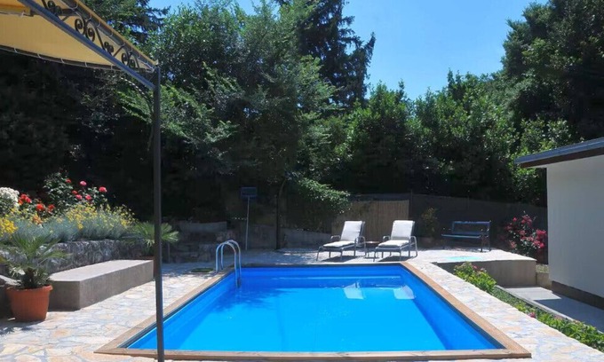 In the heart of the blue Kvarner, at the entrance to the beautiful Bay of Bakar, you will find the peaceful coastal town of Bakarac, where an exceptionally comfortable holiday home awaits you. Surrounded by Mediterranean vegetation and within walking distance to the sea, this house offers sea views from the terrace, a heated pool, and many other advantages for a relaxing getaway.