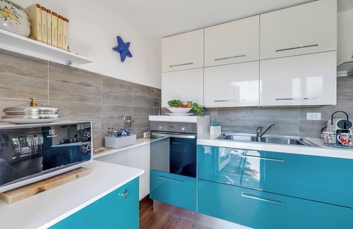 This ground-level apartment features a cosy living area with a terrace, perfect for enjoying the sunny Italian weather. The fully equipped kitchen-diner includes a coffee machine, dishwasher, microwave, oven, and fridge, ensuring a convenient stay. Free Wi-Fi is available throughout the property.