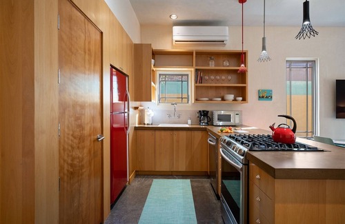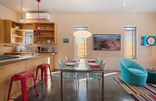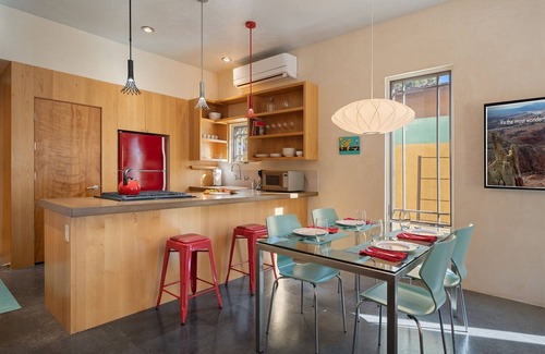 Whether you're exploring Santa Fe for the first time, revisiting favorite Southwest scenes, or craving a sunny space to work remotely, Casa Godzilla welcomes you with its bright, comfortable, thoughtfully designed space that will spark your imagination and sense of fun! Heated floors keep you cozy in winter, and in summer you’ll stay cool with the air conditioning or use the modern ceiling fans in every room to pull in the Santa Fe evening breeze.