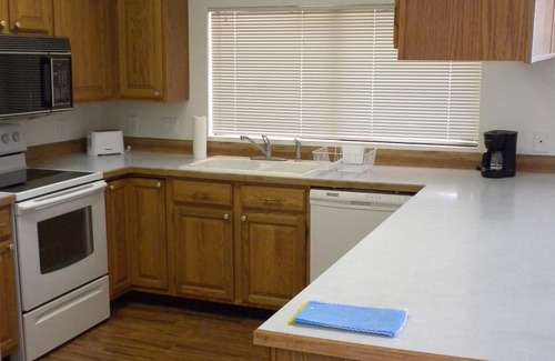 This fully furnished home has a queen size bed in the master suite Second oversized bedroom has a queen size bed and a full sized futon. This allows 2 persons per bed. Wood floors are throughout the home, a washer and dryer, dishwasher, iron/Iron board. Wifi internet and local TV channels are included.