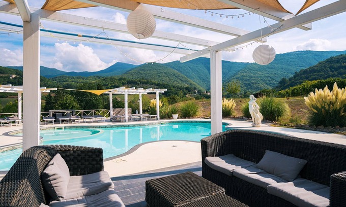 Best-rates for the casa grimaldi starts from $146 per night with includes Fireplace/Heating, Bar, Private Pool, Balcony/Terrace, Accessibility, Security/Safety, Restaurant, Toiletries, Entertainment, Wellness Facilities, Spa, Breakfast, Kitchen, Air Conditioner, Pool, Guest Services, Child Friendly, Internet, Laundry, Parking, Bedding/Linens with all other amenities. Perfect for Weddings is committed to ensuring every guest experiences a comfortable and extraordinary stay, whether planning a romantic getaway, a honeymoon, a pet-friendly stay, or celebrating with the entire wedding party.