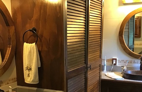 I am offering the upper floor of this Moroccan styled estate. The ground floor apartment is occupied by a couple who work for me, the charming George and Lucy. They are there if you would like to arrange for any of the services that they can provide i.e.: driving, shopping, cleaning, cooking, etc.. The property is in a well-established neighborhood with many custom homes That is a few minutes a Walmart like store and downtown Chapala. The center of the Expat community of Ajijic is about a 12 minute drive.