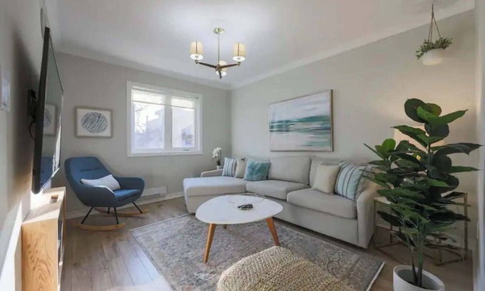 Presented by Casa Hotels, this modern 2-bedroom suite is nestled in the heart of Toronto's vibrant Leslieville neighborhood. Just steps from the boutique shops and trendy venues on Queen Street, and minutes from the scenic Woodbine and Balmy Beach Parks, this rental offers the perfect blend of urban convenience and coastal charm. Guests can effortlessly explore iconic landmarks such as the CN Tower, Royal Ontario Museum, and Casa Loma, all within easy reach. Experience the best of Toronto!