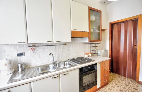 You will be able to enter the kitchen through a corridor. It is equipped with a four-burner gas cooker, an electric oven, a refrigerator with freezer, a dishwasher, a microwave oven and an Italian-style coffee-maker. The dining table is a wall mounted table, and can accommodate two guests. The kitchen is also equipped with a satellite television (local channels). The kitchen has a window. The kitchen is equipped with an air conditioning/heating unit.