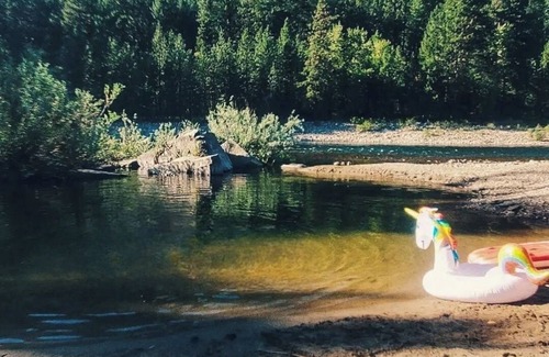 Spend your valuable time on the deck sipping your morning coffee to the sound of the cascading river. Follow that with a lazy float down the Kettle River, picnic on the beach & soaking in some sun. Enjoy a BBQ dinner and outdoor games in the huge backyard surrounded by towering ponderosa pines. End your evening with an outdoor movie night, peaceful stargazing, or bevies around the fire.