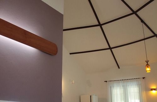 Inside the house there is one bedroom with a big doublebed, air condition and a walk-in wardrobe. The bathroom consists of a warm-water shower, a toilet and a jacuzzi. Bedlinen and towels are also provided.