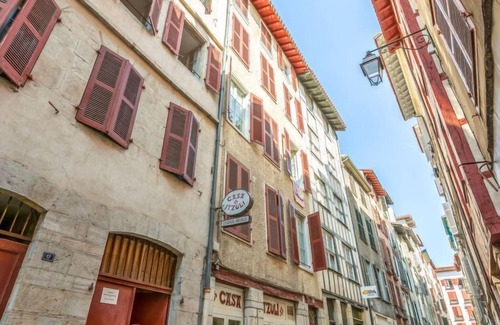Bayonne 9 km from Biarritz: Beautiful, historical apartment house "Casa Itzuli", 4 storeys. In the centre of Bayonne, in a central, busy position, 7 km from the sea, 7 km from the beach, 20 m from the river. Shop 20 m, grocery 70 m, restaurant 20 m, bar, bakery 50 m, 1 minute walk to the centre, bus stop "Echauguette-Museoak" 600 m, sandy beach "La barre" 7 km. Golf course (18 hole) 8 km, surf school 7 km. Nearby attractions: Musée du Jambon de Bayonne 77 m, Cathédrale Sainte Marie 350 m, Jardin botanique 650 m, Le marché des Halles 70 m, Centre Historique 5 m. Please note: no lift. The keys‘ handover takes place by the agency Interhome in Biarritz, 9 km.