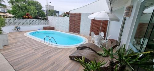 Casa Jurerê Internacional is a recently renovated vacation home in Florianópolis where guests can make the most of the outdoor swimming pool and garden. This property offers access to a balcony, free private parking, and free Wifi. Jurere Beach is a 6-minute walk from the vacation home and Floripa Mall is 10 miles away. Providing a terrace and pool views, the spacious vacation home includes 3 bedrooms, a living room, flat-screen TV, an equipped kitchen, and 6 bathrooms with a walk-in shower. Towels and bed linen are provided in the vacation home. The property has an outdoor dining area. Iguatemi Florianopolis Shopping Mall is 13 miles from the vacation home, while Campeche Island is 21 miles away. Florianopolis-Hercilio Luz International Airport is 20 miles from the property.