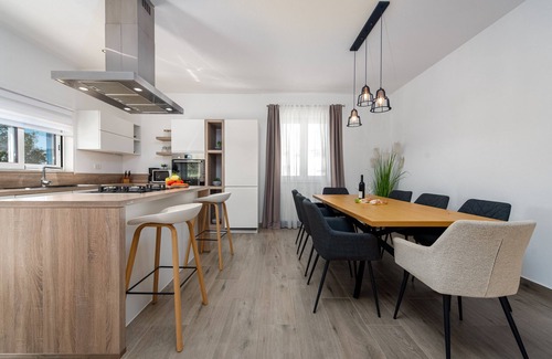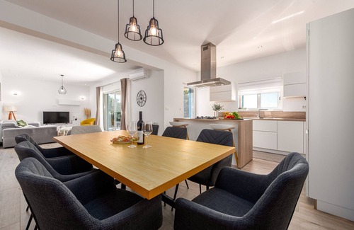 Casa Kamber is located in the peaceful village of Tinj, close to popular tourist destinations such as Biograd na Moru and Zadar. This modern villa with a private pool and spacious terrace is the perfect choice for families looking for a comfortable and peaceful vacation. It is ideal for families, groups of friends, or couples and can accommodate up to 8 people.The villa consists of three bedrooms with double beds, two bathrooms, a fully equipped kitchen, and a spacious living room, offering accommodation for up to eight guests. It is perfect for families with children, providing a variety of amenities such as a playground, ping-pong table, and billiards. The private pool and terrace with views of nature offer relaxation and enjoyment in the fresh air. The surroundings are perfect for walks and exploration. You will enjoy complete privacy and comfort here, with the friendly owners ensuring your stay is unforgettable.Nearby, you can enjoy natural beauty such as Vrana Lake and the Kornati National Park. If you are a nature and history lover, the Krka and Paklenica National Parks are in the 60 kilometers radius, as well as the city of Zadar, known for its Sea Organ and Romanesque churches.*Younger groups under the age of 25 are not allowed** Pets are allowed on request