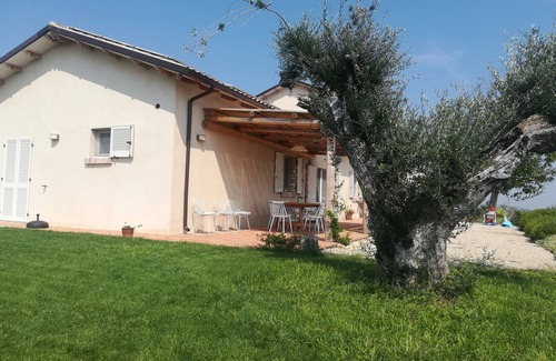 Villa immersa nella campagna tipica abruzzese,ai piedi del gran sasso,ideale per gruppi di amici e ritiri,lontano dal rumore della città ma vicino comunque all’aeroporto di Pescara,.casa completa di comfort