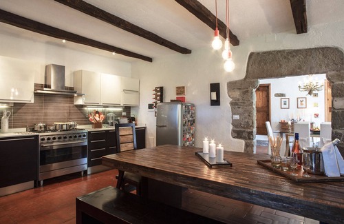 There’s a real sense of history about this quirky old stone villa in the heart of the Florentine countryside, named after the 500-year-old oak tree in its grounds. It offers a perfect blend of old and new, melding traditional Tuscan architecture with modern furnishings and fittings. The open-plan, split-level layout, linked by stairs and arches, is straight out of an interiors magazine. On the ground floor, a cavernous (and superbly equipped) kitchen flows into an equally spacious dining room. Up a short flight of stairs, a second huge lounge unfolds, leading upwards again to the top floor and a further space for relaxing. There are unique details, too, such as the beautiful hardwood dining table in the kitchen and the king-size bed in the mezzanine-floor bedroom, both of which are made from reclaimed peroba.