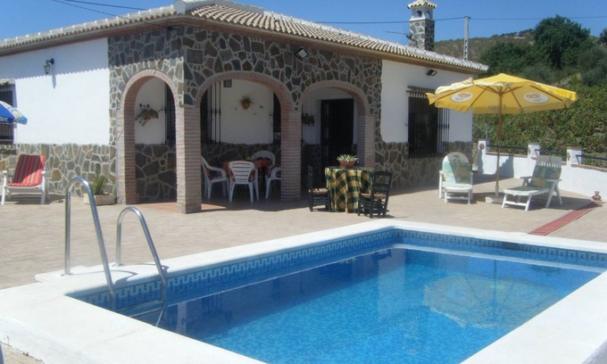 Villa with three bedrooms for six people with private garden and pool and barbecue, parking area within the land, fully fitted kitchen, fireplace, excellently connected with all services and tourist attractions in the area 30 minutes from the beach. Stunning mountain views, near the natural park of Sierra Tejeda, Almijara and Alhama. Between the towns of Canillas de Aceituno and Sedella