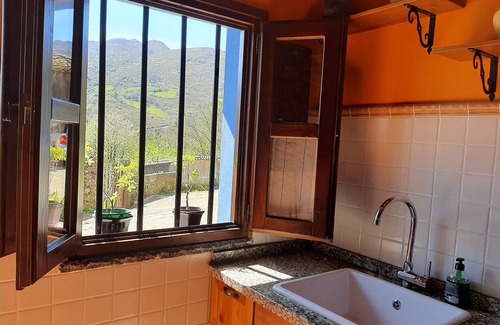 On its three floors it has a kitchen with washing machine, hob, fridge, microwave, small appliances and kitchenware on the ground floor. On the top floor is the double room, with a sunny balcony overlooking the mountain and the bathroom. On the lower deck is the living room with two sofas one of them bed, television, DVD and small library, film library. This room is illuminated by a colorful casetón typical of the Asturian houses. In the entrance portal there is a table and two chairs where you can sit and relax and rest.