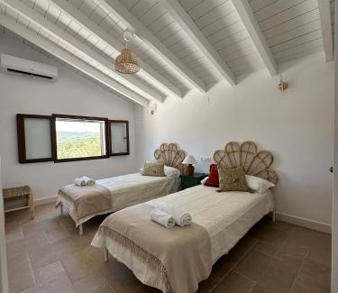 A recently renovated villa, Casa Manuela offers accommodations in Montefrío. This property offers a private pool, free Wifi, and free private parking. The villa has a picnic area and a fitness room. Offering direct access to a balcony with pool views, the spacious air-conditioned villa consists of 5 bedrooms. Featuring a terrace with mountain views, this villa also includes a flat-screen TV, a well-equipped kitchen with a dishwasher, an oven, and a microwave, as well as 5 bathrooms with a shower and a hair dryer. The property has an outdoor dining area. Guests can also relax in the garden. Federico Garcia Lorca Granada-Jaen Airport is 29 miles from the property.