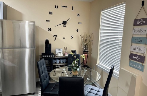 Short term rental up for your consideration. We are offering this newly renovated first floor apartment that has the following. Small kitchen/dinning area which includes a full size refrigerator/freezer, sink, toaster oven, microwave, kettle for tea/coffee, keurig machine.