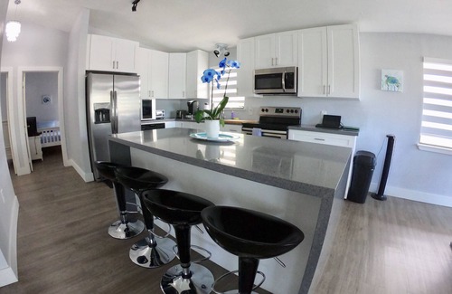 Casa Marina is newly renovated and conveniently located on a canal just a few houses away from the open bay and minutes from Adams Cut for easy access to the ocean side. Enjoy the convenience of a private ramp to launch your boat, 60ft of dock and plenty of space to park your trailer. No boat? No problem! There's a private pool and plenty of water toys including tandem kayaks, a paddle board and 2 bikes.