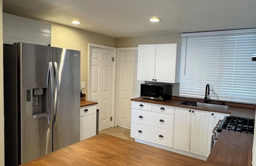 The kitchen is equipped with an oven, a stovetop, and a refrigerator, as well as a coffee maker, an electric kettle, and a microwave. Connect to the WiFi, or get cozy in front of the Smart TV. Bathroom amenities include a hair dryer, towels, and toilet paper. And thanks to the washer and dryer, you'll even be able to travel light. Other amenities at this 3-bedroom, 2-bathroom rental include bed sheets, an ironing board, and heating.