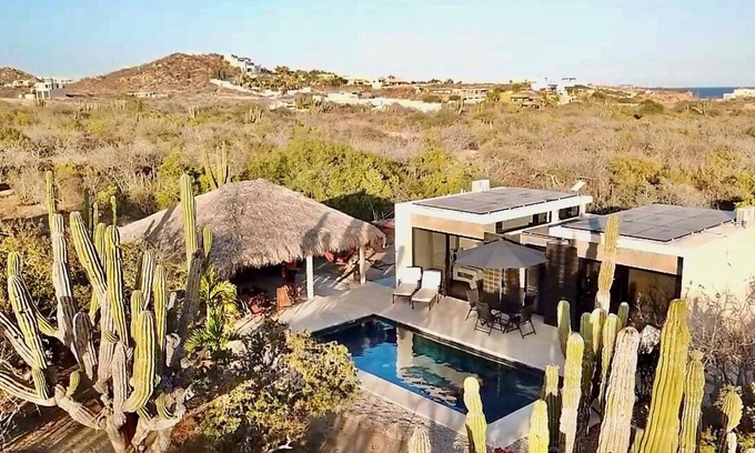 Casa Moonshine is a modern, self-sufficient home in the peaceful, off-grid community of Zacatitos on the East Cape of Baja.