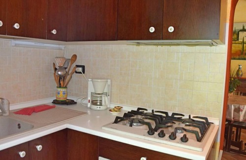 2-room semi-detached house 45 m2, on the ground floor. Comfortable furnishings: living/dining room with 1 double sofabed and satellite TV. Exit to the patio. 1 double bedroom. Small, open kitchen (4 hot plates, oven, microwave, freezer, electric coffee machine). Shower/bidet/WC. Gas heating. Heating available only from 15.10. to 30.04. Patio partly roofed. Terrace furniture, barbecue. Facilities: washing machine. Please note: maximum 2 pets/ dogs allowed. Private entrance. IT012045C2D2268Q8D
